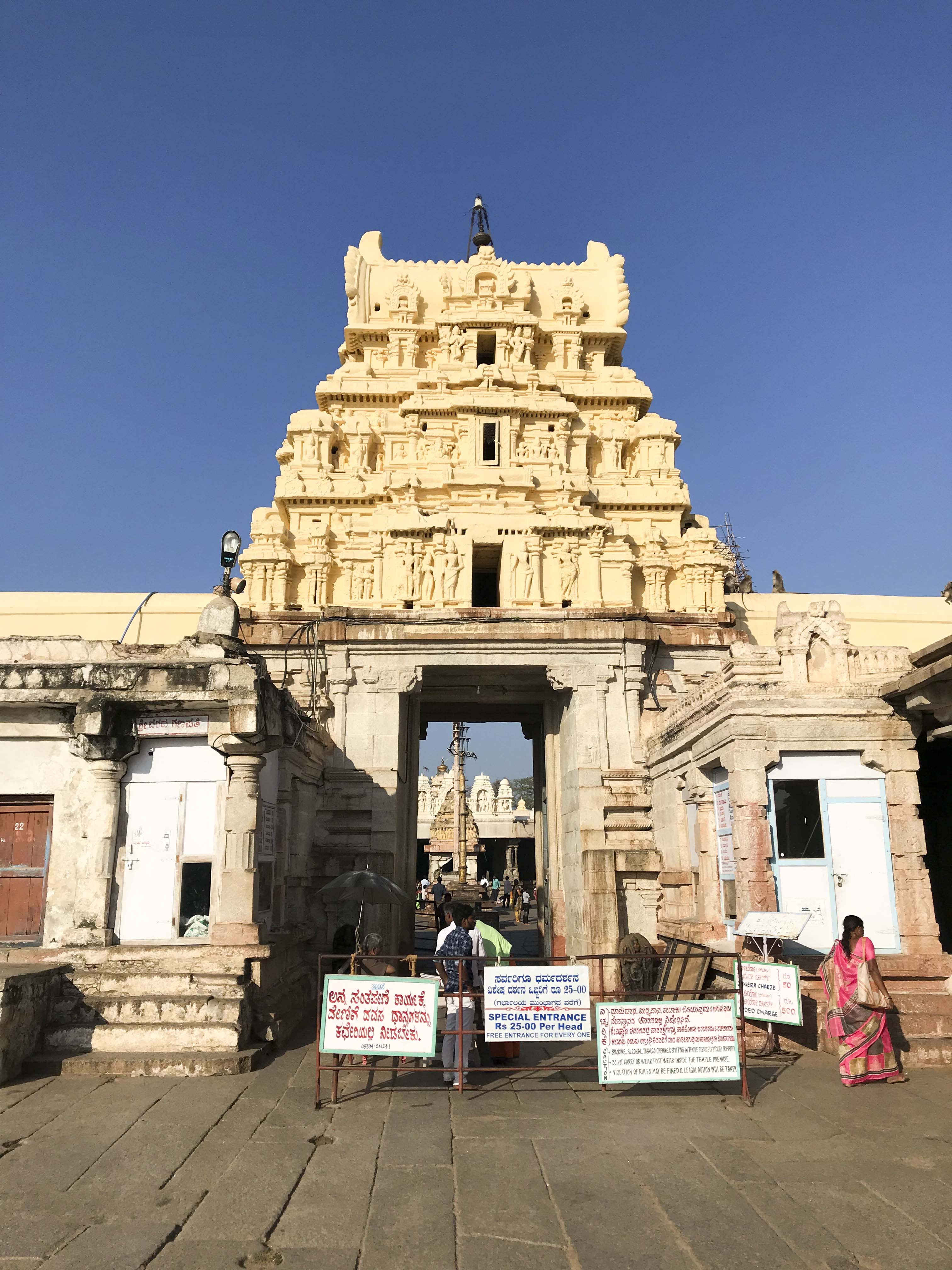 The next morning, before a long bus ride to Bangalore, I resolved to tackle a challenge which had been taunting me since the very first day. From the Temple of Shiva, at the very top the facing mountain, I'd seen a small temple and noticed someone worshipping in silhouette beside it. But I couldn't find the temple on any map nor discover any path to it. Naturally, I had to figure out how to get there.