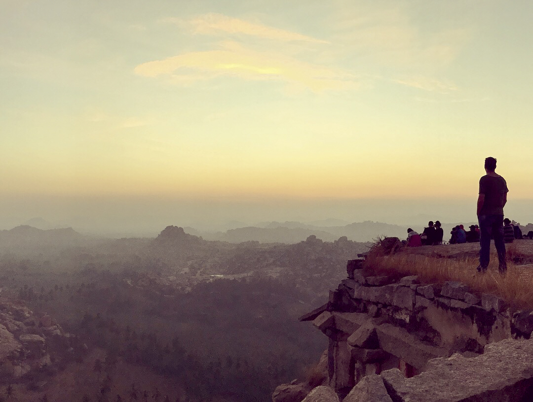 The trail reached its final bend and I found myself at a weathered stone temple built into the top of the hill, which I later learned was called Matanga. A gentle man inside, already bright-eyed and energetic, asked that I remove my boots and welcomed me to the temple of Shiva. Climbing the stairs to the roof, I joined a small group of others who silently gazed into the citrine corona of the eastern horizon. Worn from the climb and the journey before it, I settled down in this confused alternate reality and watched the sun rise.