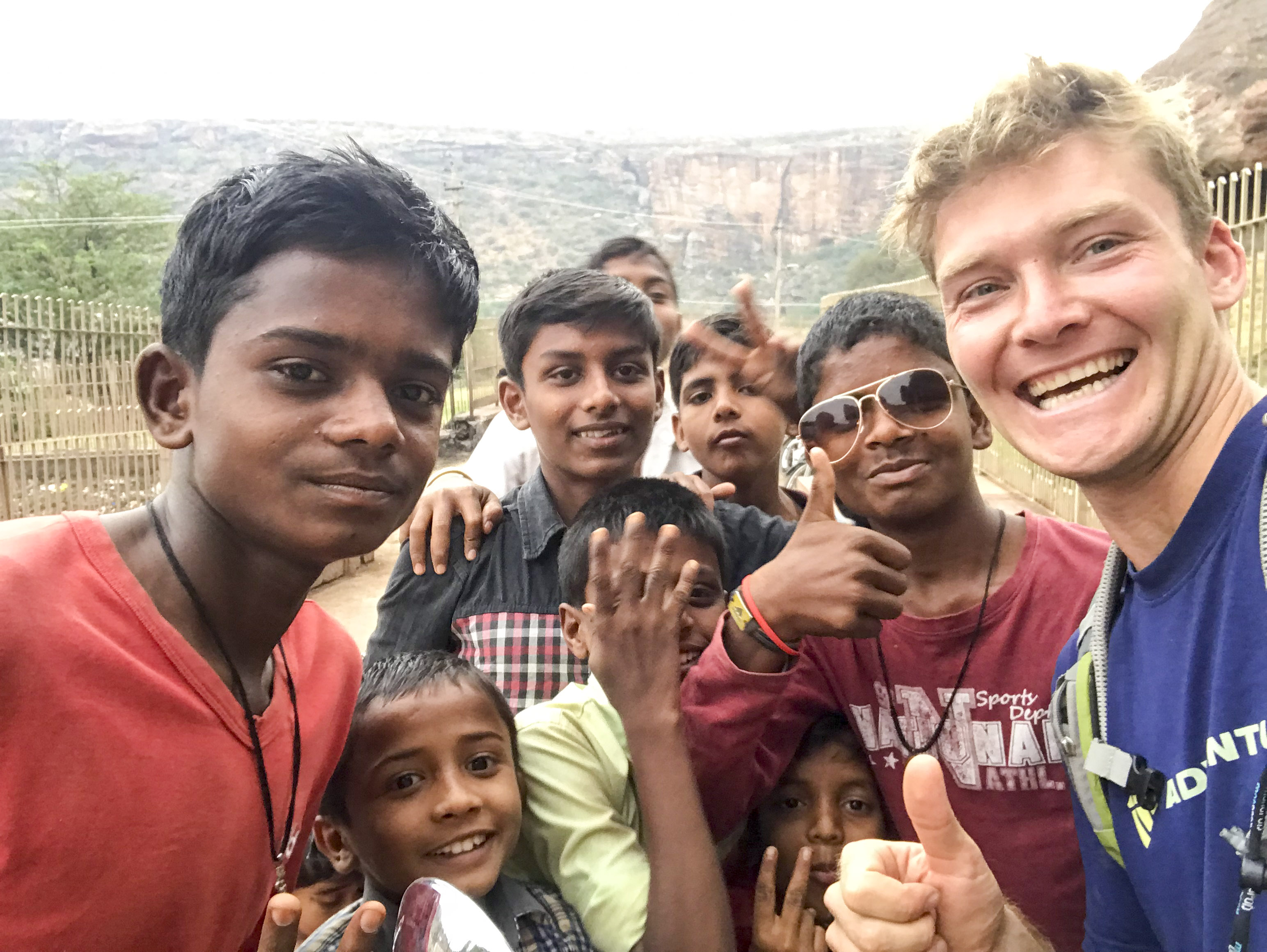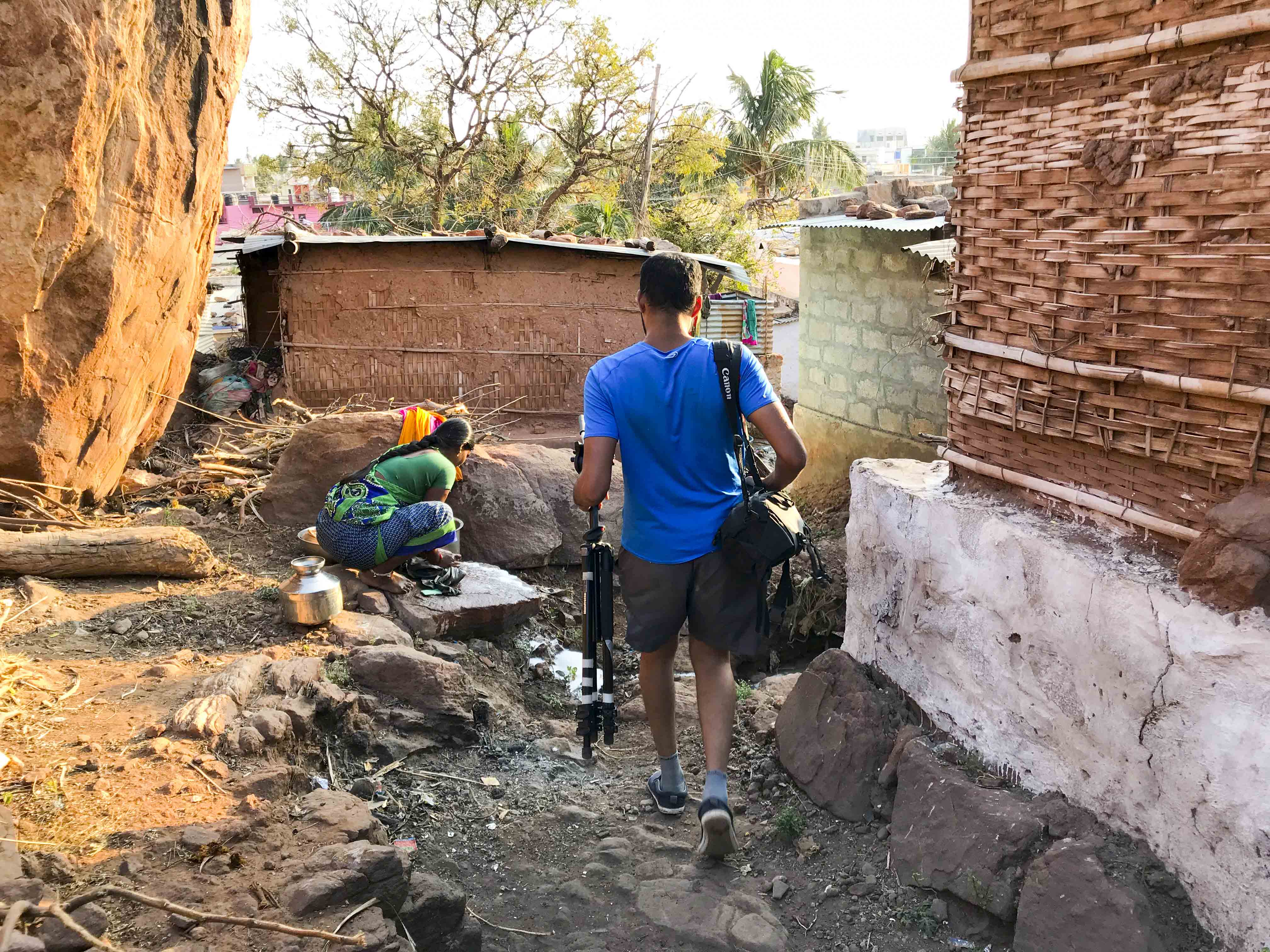 Ganesha Wader is the local climbing hero. He's explored, ascended and even named just about every route in the sandstone caverns atop the mesas. Curious to try the first outdoor climbing I'd done in over 15 years, I hired him as a guide and we wound through the town towards the cliffs. The homes were all humble, single-story huts with open doors and colorful laundry hanging across the way. The paths that threaded upwards between them were choked with multi-colored mud and debris, serving as the drain for everything from wash basins to food scraps.